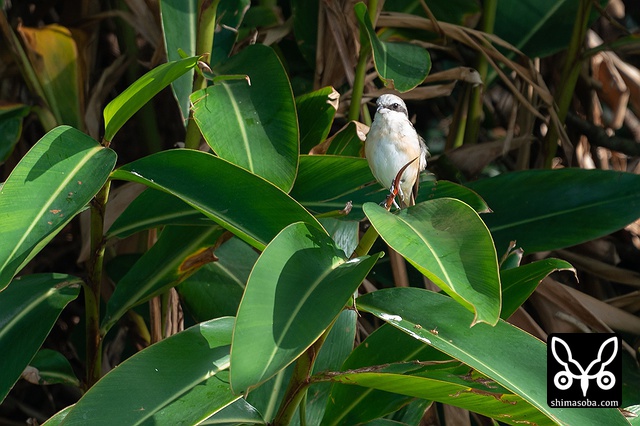 タカサゴモズと同じエリアにいたシマアカモズは、縄張り争いをするも体格差で常に劣勢でした。