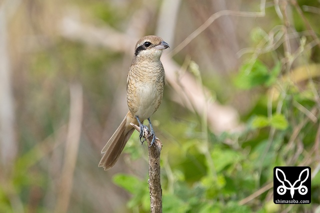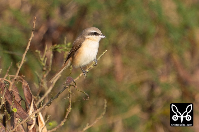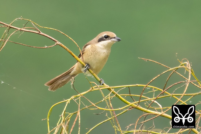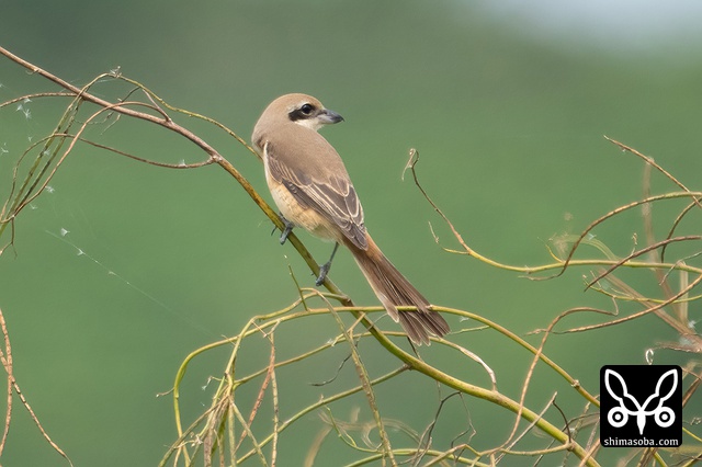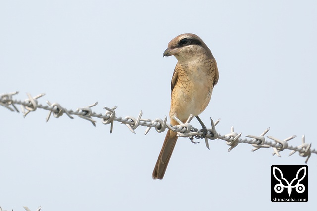 シマアカモズのメス成鳥。9月下旬ごろの渡りのピークを過ぎたので越冬組だけが残っています。
