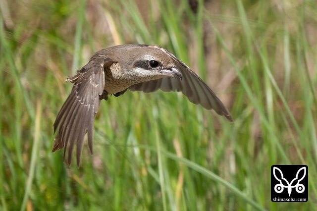 バッタを捕まえたシマアカモズ。こちらも第1回冬羽。成鳥はこれからです。
