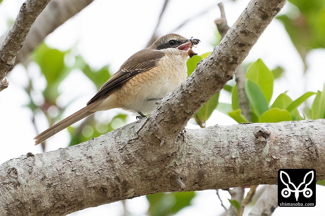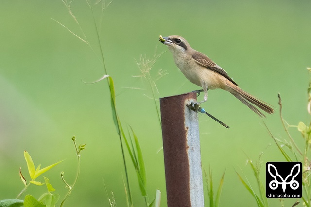別個体のシマアカモズ。ギンヤンマを捕まえました。
