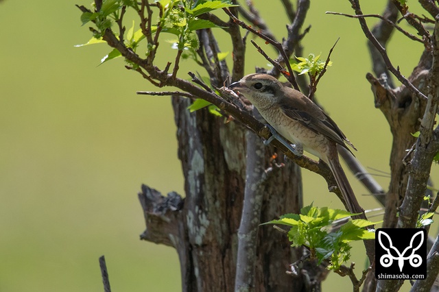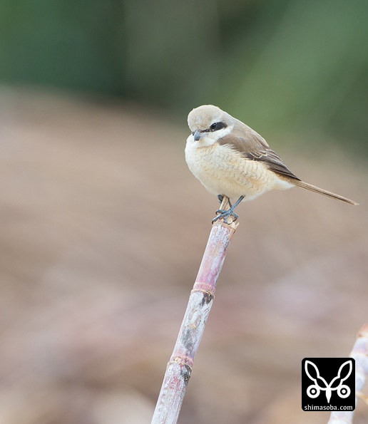 上のシマアカモズと同じ畑にいたシマアカモズ。こちらも幼鳥。