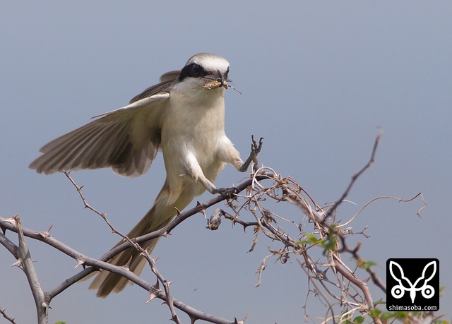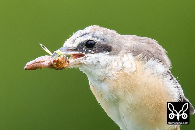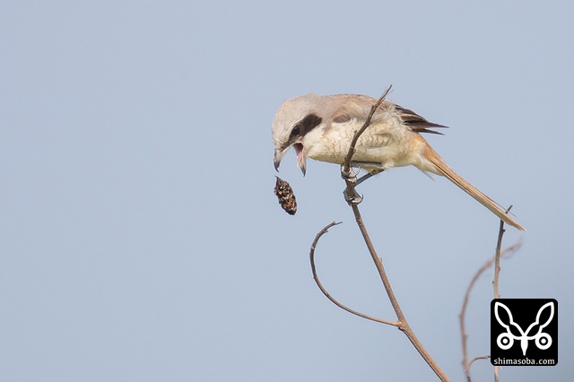 美しいシマアカモズのオスもバッタなどを捕まえていました。