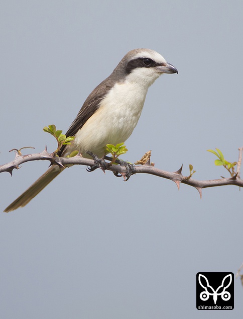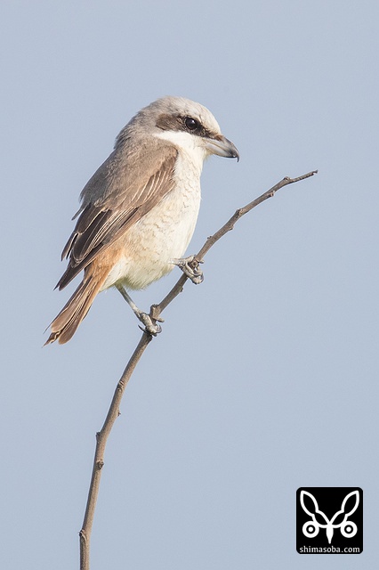 シマアカモズのオスは、第1回冬羽から第1回夏羽へ移行中。
