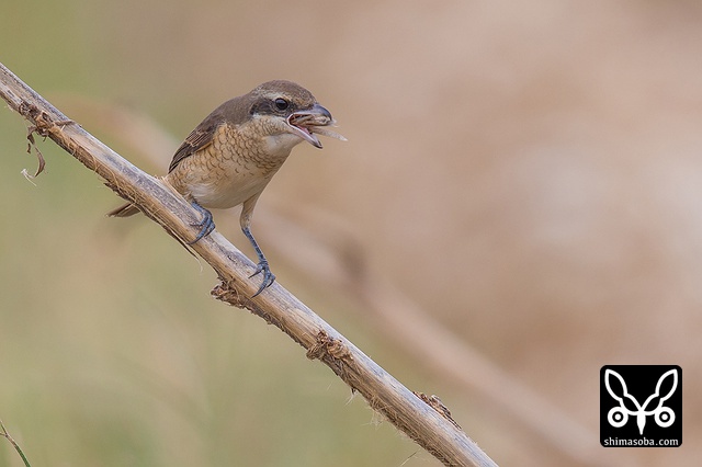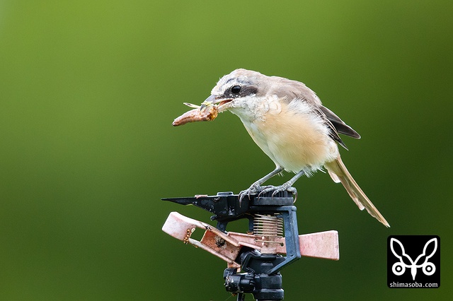 なんとシマアカモズ幼鳥がギンヤンマを捕まえた!!