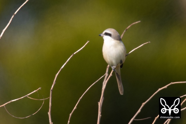 色白のシマアカモズ。遠いのと気温が高く空気が揺らぐのでピントがいまいち来ない。