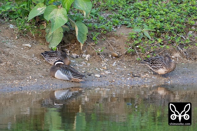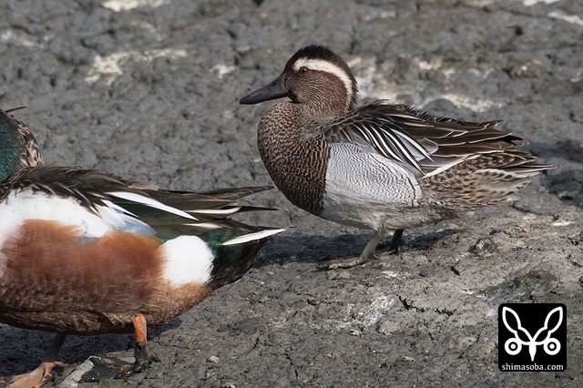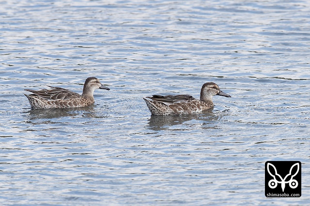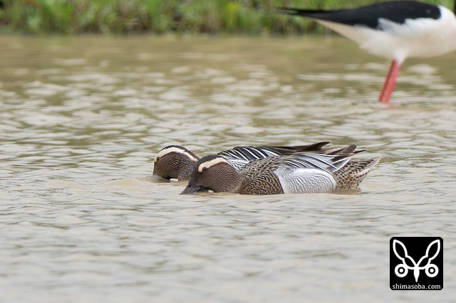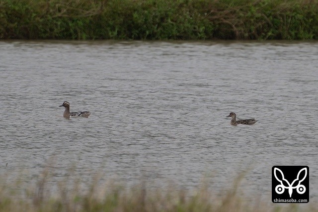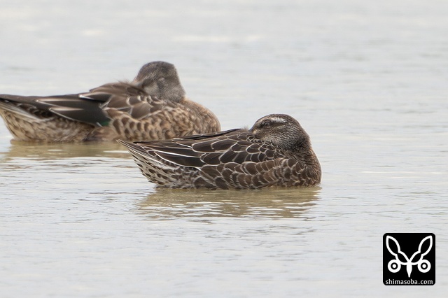 2羽ともシマアジの成鳥オス。まだまだ非生殖羽なのであの派手さがありません。