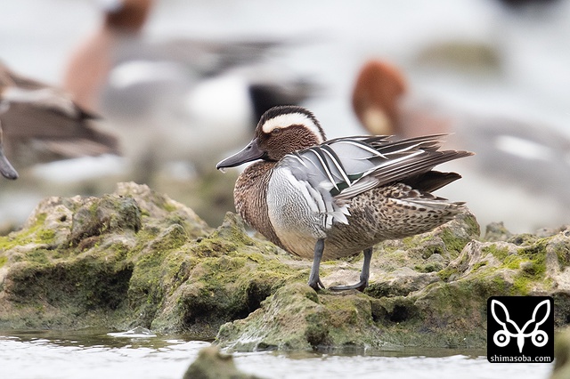 今季は飛来数が多いシマアジ。コガモの群れには大抵シマアジが入っています。