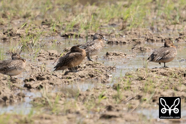シマアジ4羽が田んぼに到着。シマアジが現れると春を実感します。