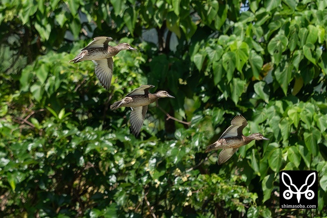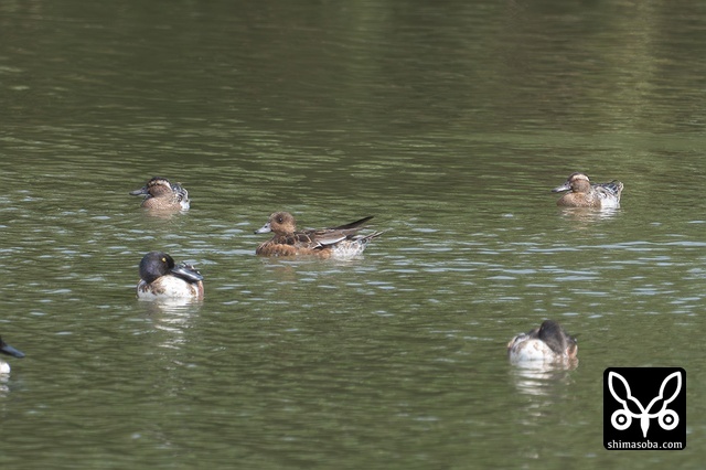 シマアジ、コガモ、ハシビロガモも群れ。石垣島ではシマアジは通過組、コガモとハシビロガモは越冬組です。