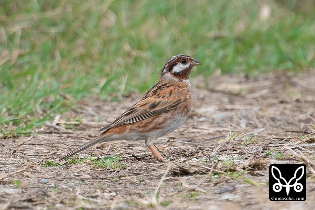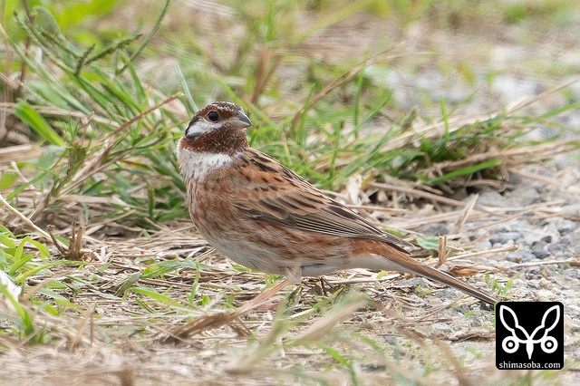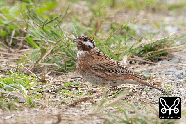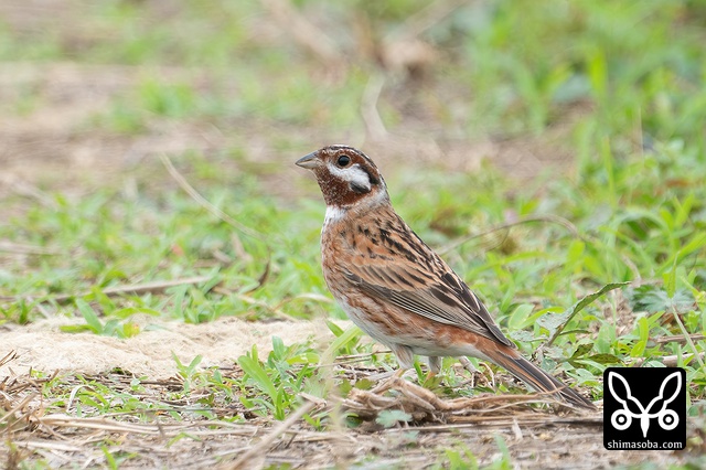 反対側から。シラガホオジロは農道や畔に落ちている何かを食っていました。