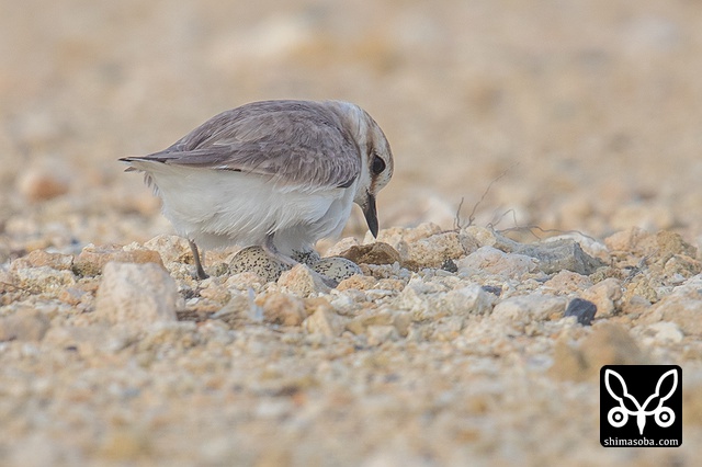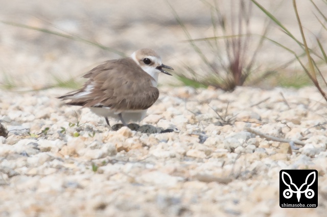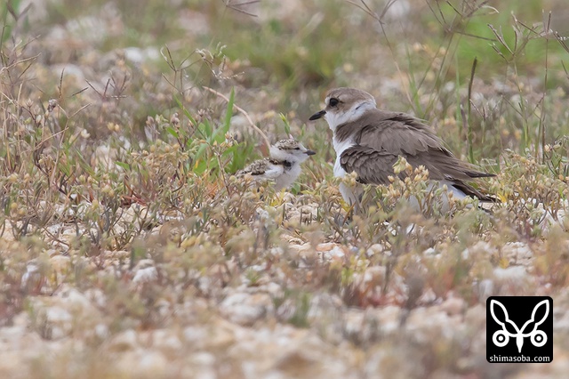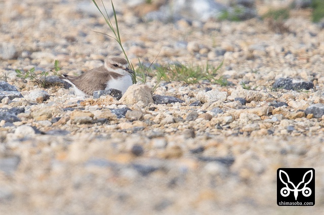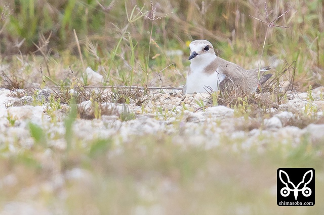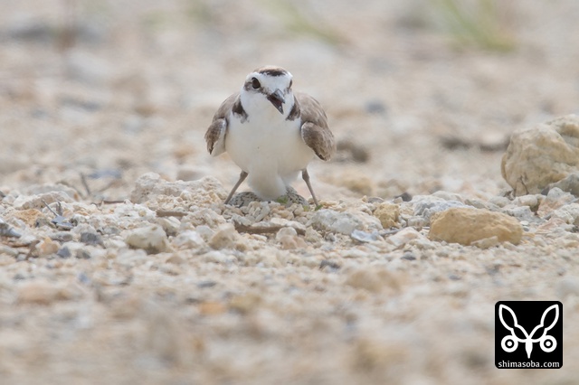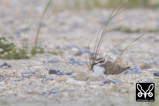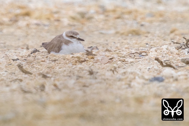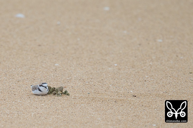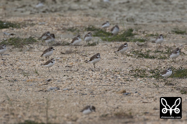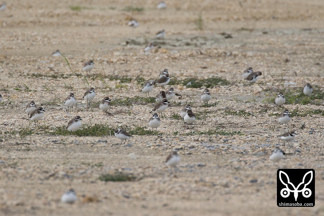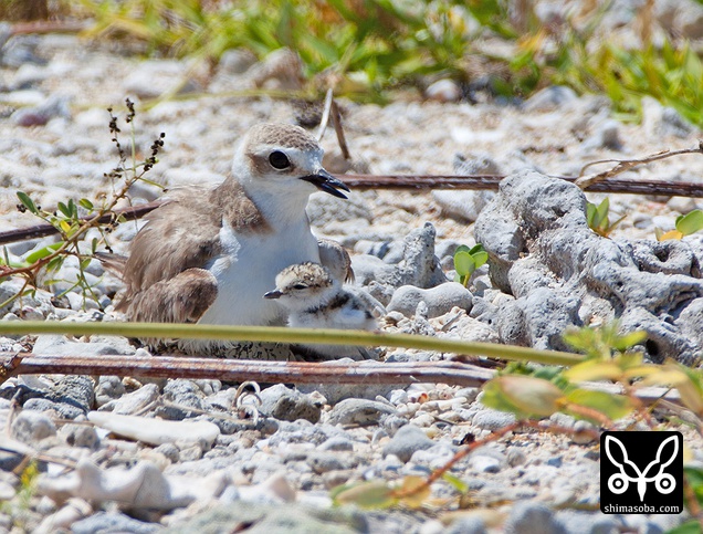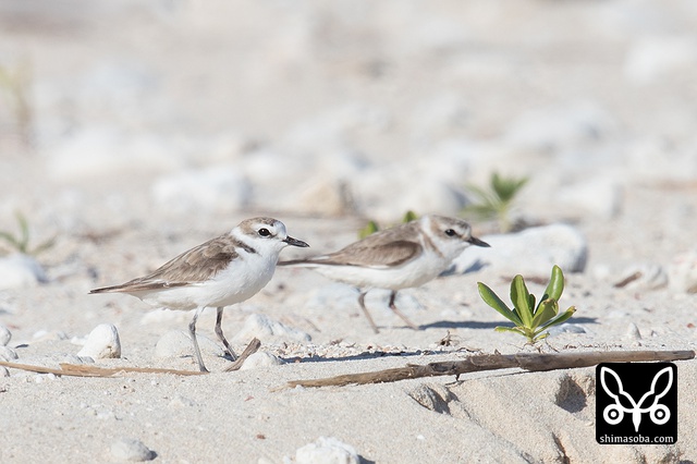 この2羽のシロチドリが偽傷などをしてヒナを守っていたのですが、両方ともメスですよね? シロチドリのオスは子育てに参加しない? p.s. この時期、羽の磨耗が激しくオスメスの区別がつきにくくなるそうです。左側の個体がオスだそうです。見分けポイントは側胸のラインが黒いところだそうです。バードリサーチの方に教えていただきました。