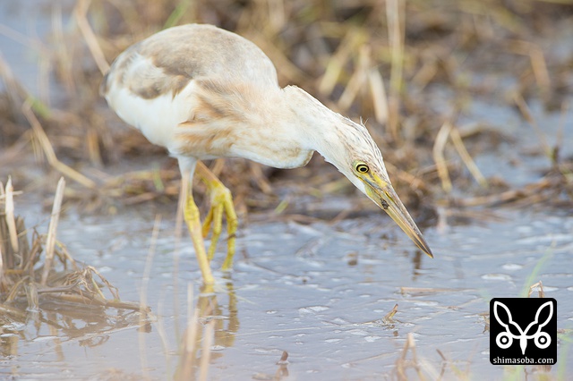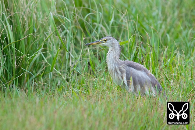 発見時は、奥に見える草むらに隠れるように餌を探しているようでした。行動はアカガシラサギと変わりません。 `先日見つけたアカガシラサギ <https://shimasoba.com/blog/1284/>`_ は非常に警戒心が強かったのですが、このジャワアカガシラサギはあまり警戒心が強くないようです。