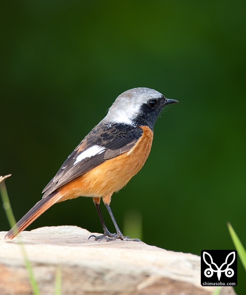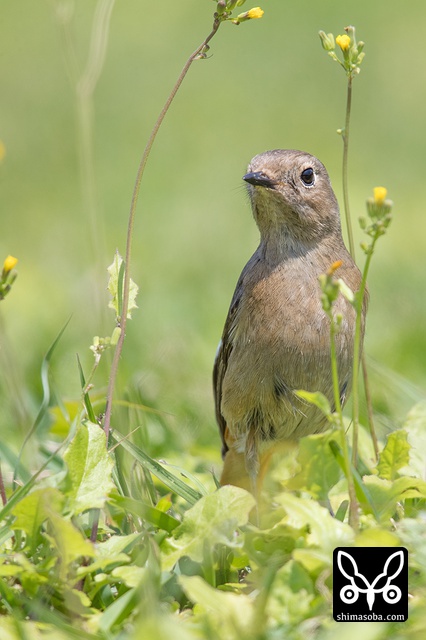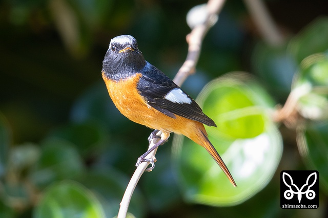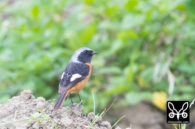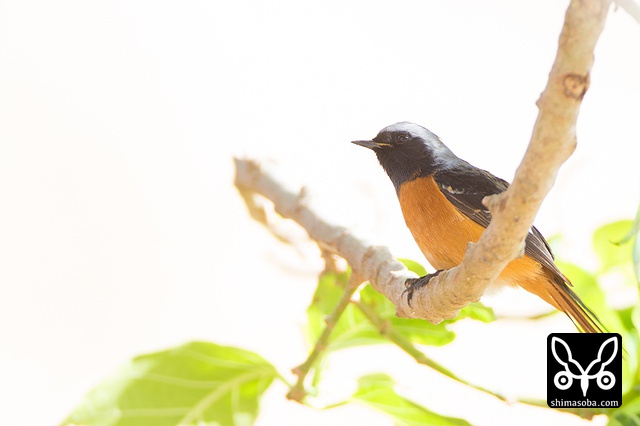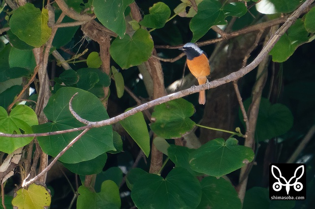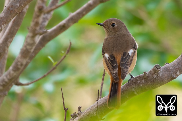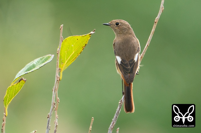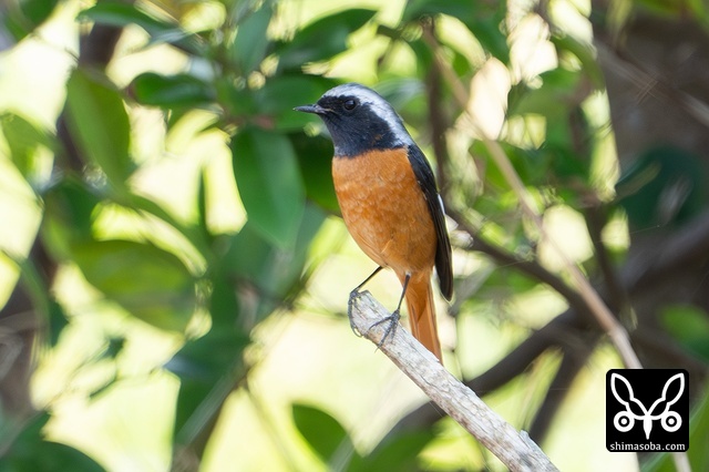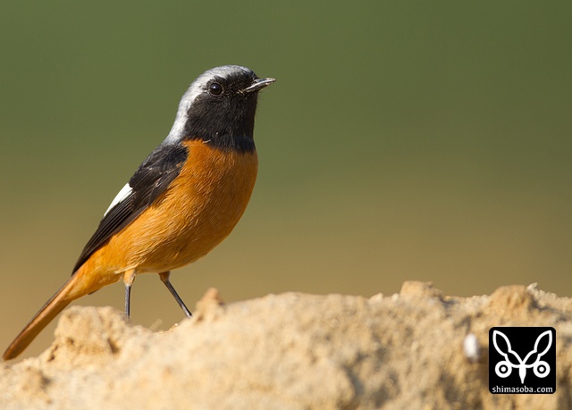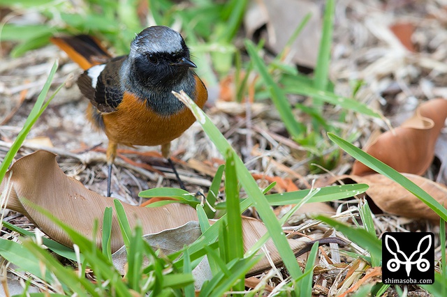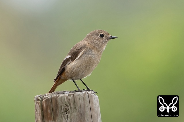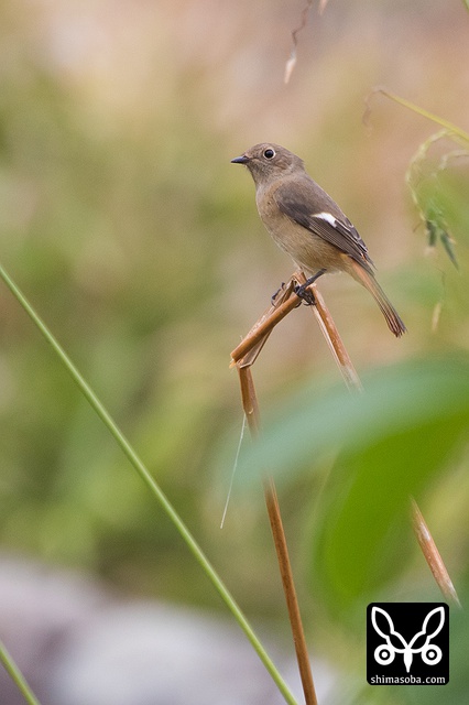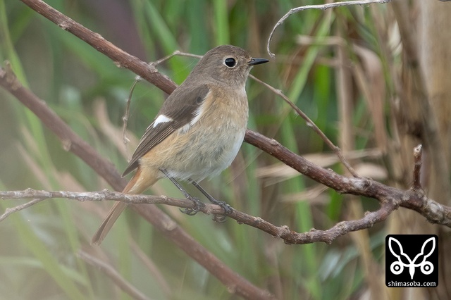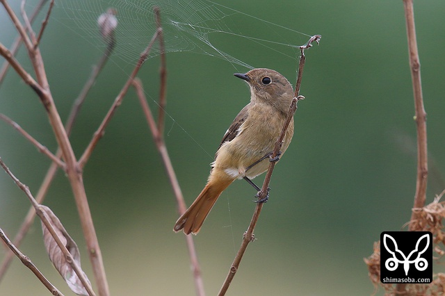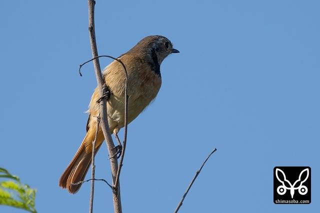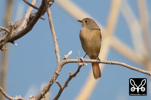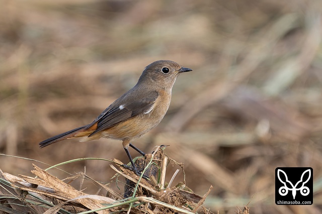 喉のあたりがオス成鳥の姿に変わる途中かと思ったのですが、羽が抜けてしたの黒い部分が露出しているようです。それでも目の上からえらの辺りにかけての白っぽい羽毛はオスのように見えます。ただ、ジョウビタキは幼羽から第1回冬羽に代わる時、オス個体は鮮やかなオレンジの羽が出るようです。この個体は一部オレンジがかっていますが、ほかは茶色です。