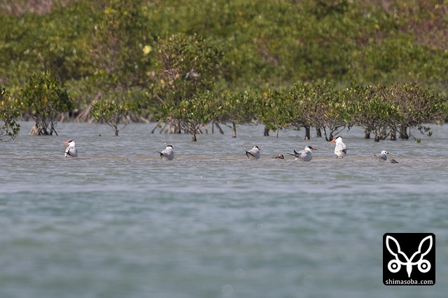 マングローブとズグロカモメ。沖縄でないと見られない風景です。