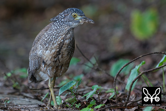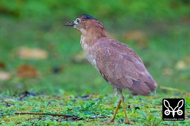 巣立ち後、何日がたったズグロミゾゴイの幼鳥。まだ口ばしも短く、虹彩も青みがかって幼さが残ります。