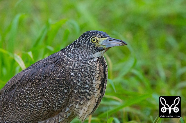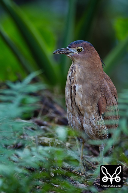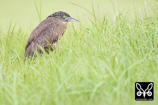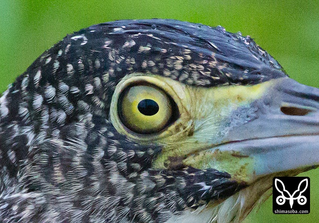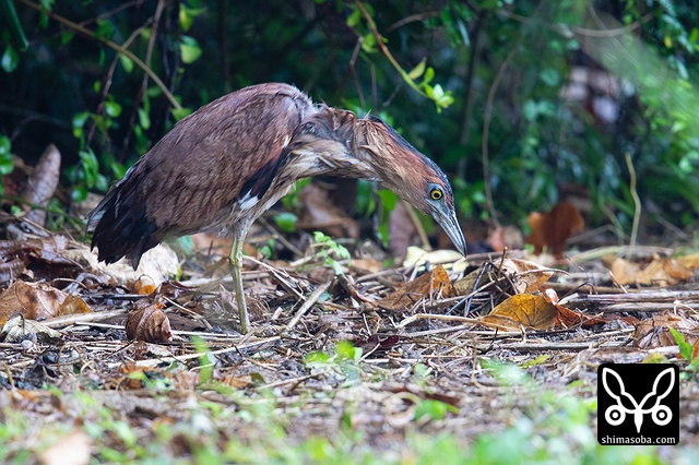 ズグロミゾゴイは、幼鳥が雨に濡れながらの餌探し。