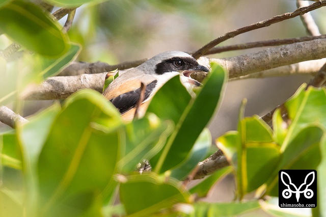 タカサゴモズを正面から見ると、目の周りの黒い仮面がまるで怪傑ゾロのよう。^^