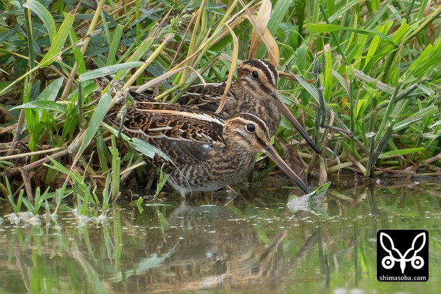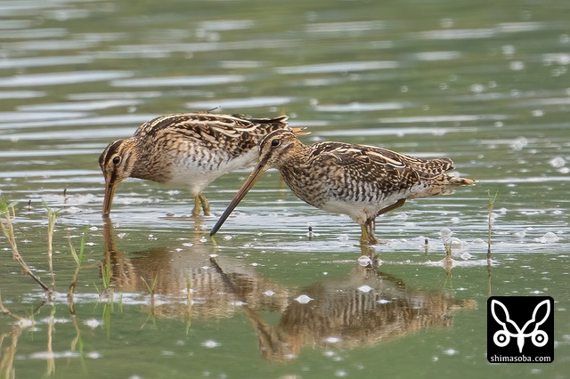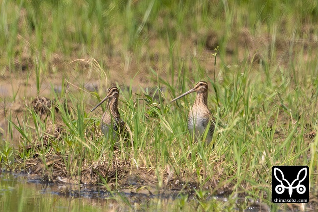 こちらのタシギは2羽とも幼鳥。