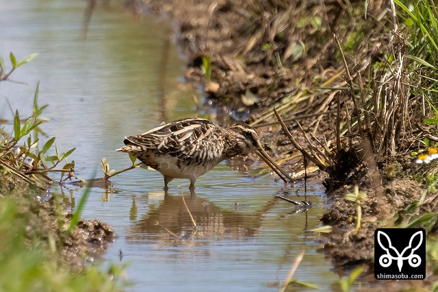 上の個体から10メートルほど離れてもう1羽。こちらはタシギ。