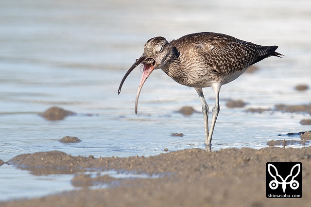 チュウシャクシギをはじめ、漫湖干潟にやってくるシギたちは、カニをよく食べます。