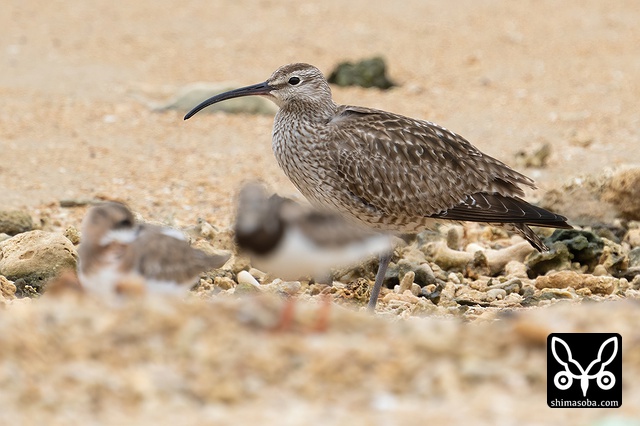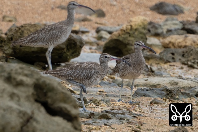 数羽で滞在中のチュウシャクシギ。
