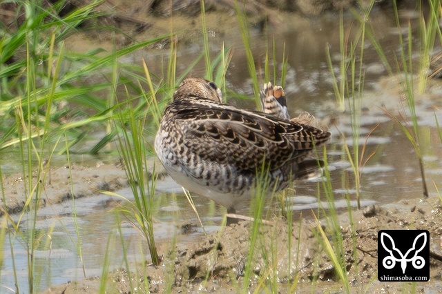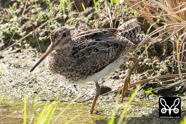 尾羽は細いのですが、この状態で見えるぐらい長い。ハリオシギとチュウジシギの交雑とかもあるのでしょうか?