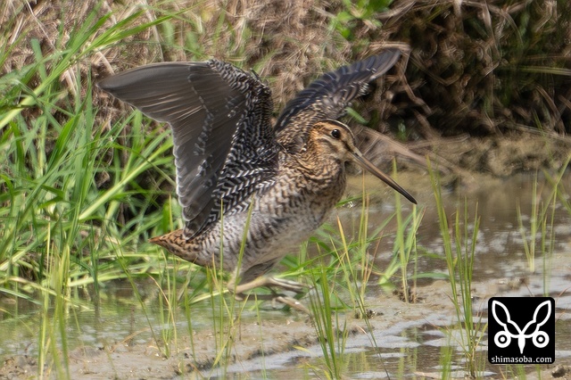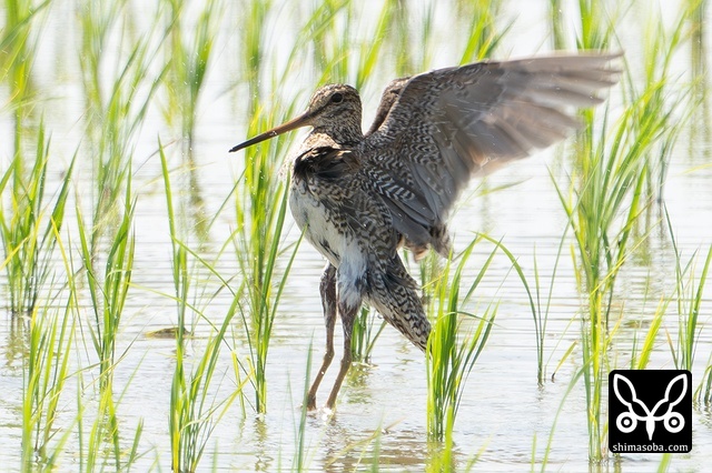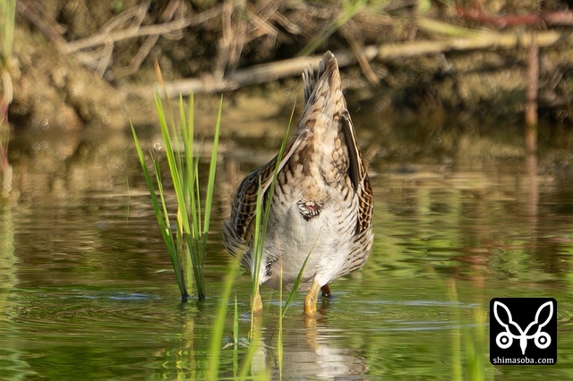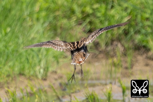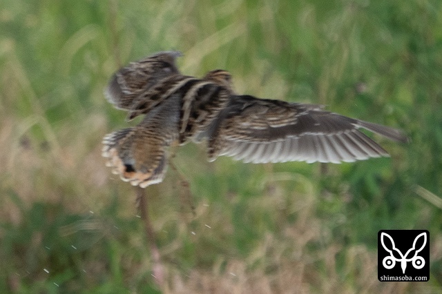 上と同個体。尾羽はいたって普通のチュウジシギ。