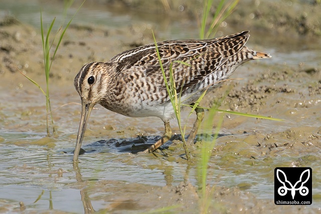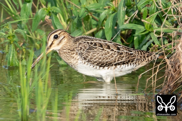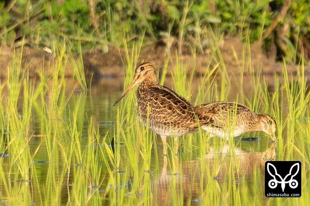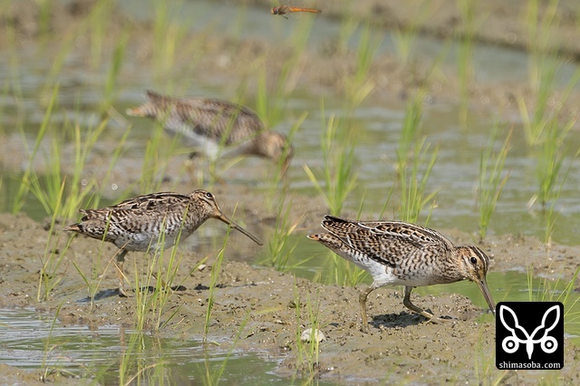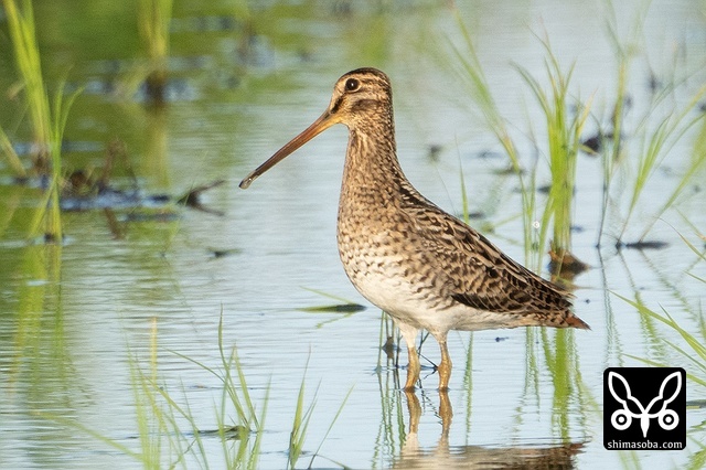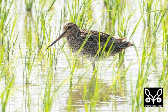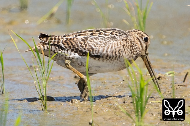 群れの中でかなり目立っていたチュウジシギ幼鳥。