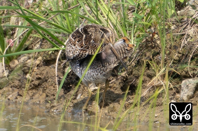 チュウジシギ幼鳥。角度によっては外側尾羽は針のように見えます。ハリオシギとの違いは長さに注目してください。