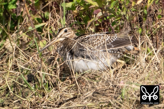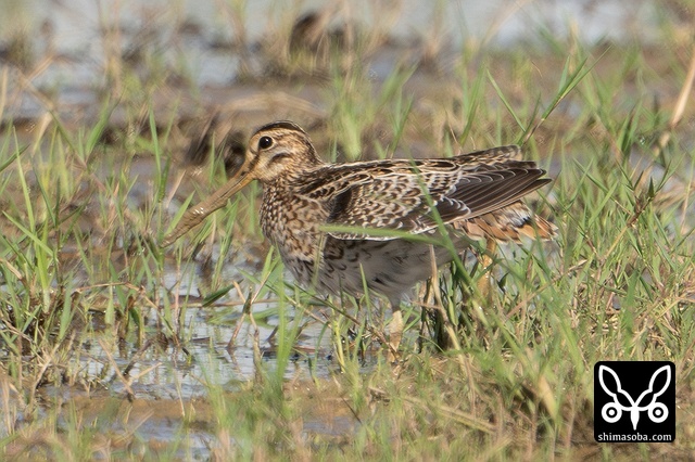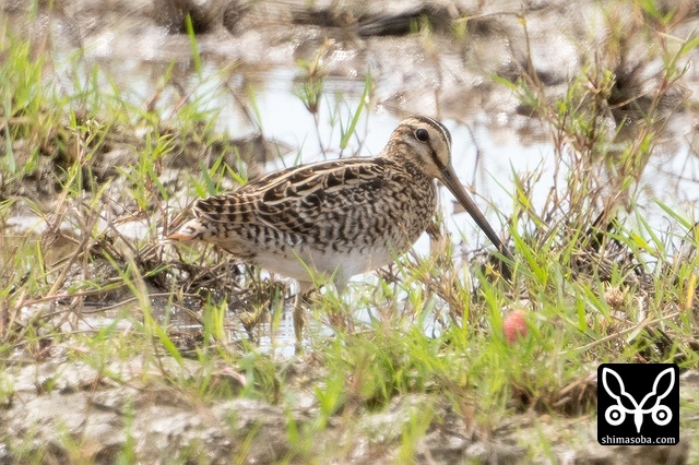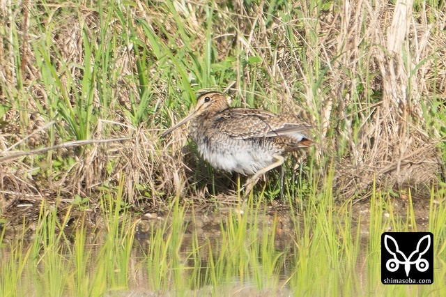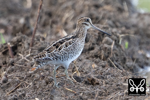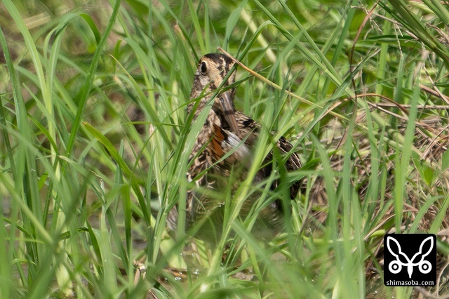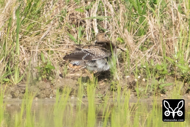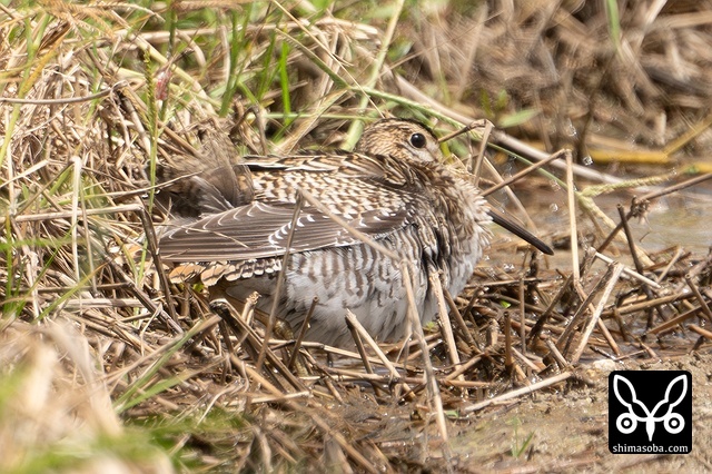 チュウジシギ幼鳥。 `数日前に4日間通って尾羽撮った個体 <https://shimasoba.com/blog/2279/>`_ 。やはりこの日見てもハリオシギ寄りの紛らわしい個体。