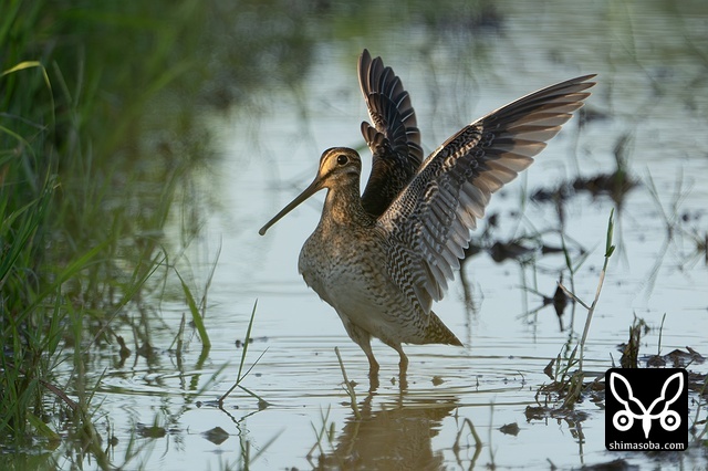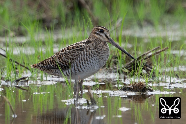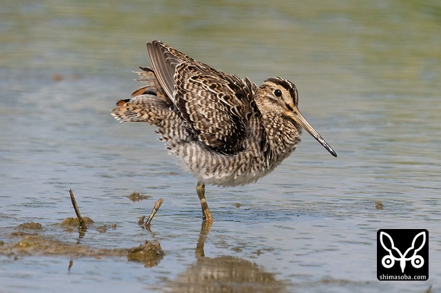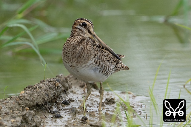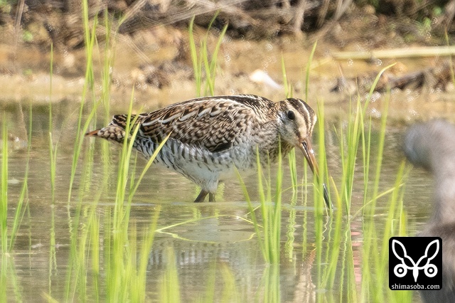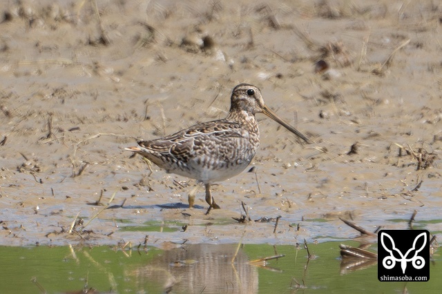 上のハリオシギと同じ場所にいたチュウジシギ。