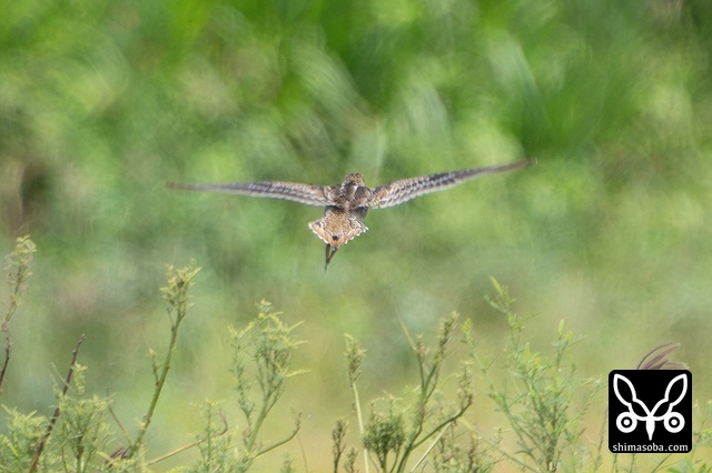こちらもチュウジシギ。同じエリアの違う田んぼで撮ったのですが、上と同個体でした。散歩の人に驚いて飛んできた?