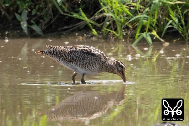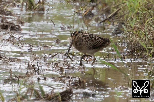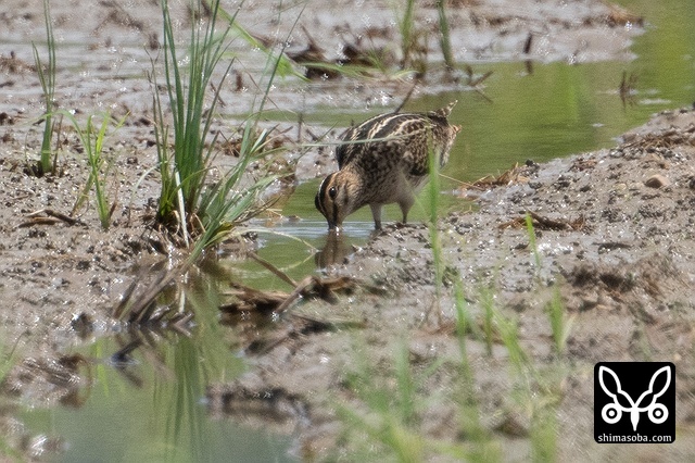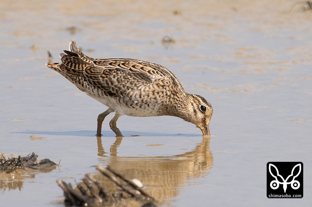 こちらはチュウジシギ。くちばしを泥だらけにしてさかんに餌をとっていました。