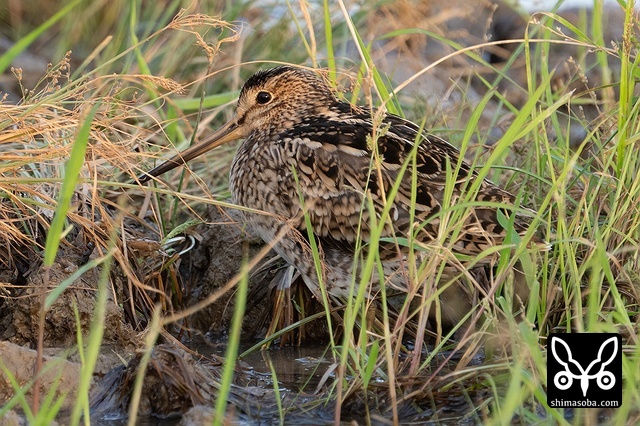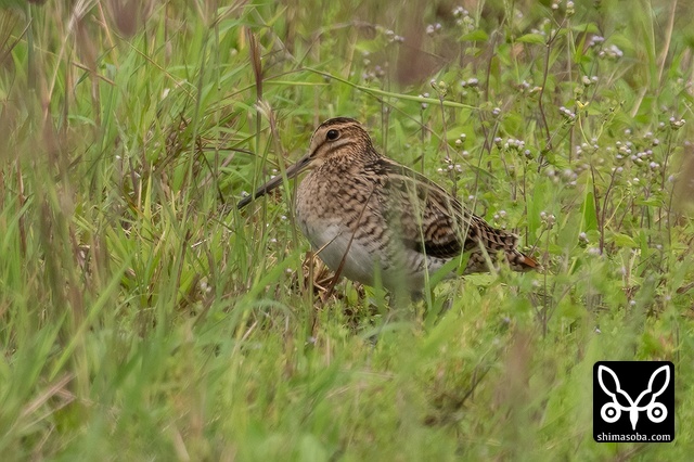 遠くの草むらにチュウジシギ。