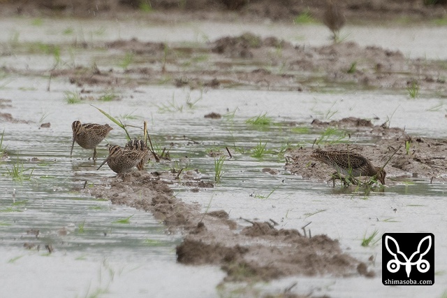 チュウジシギもあちこちの田んぼに入っています。