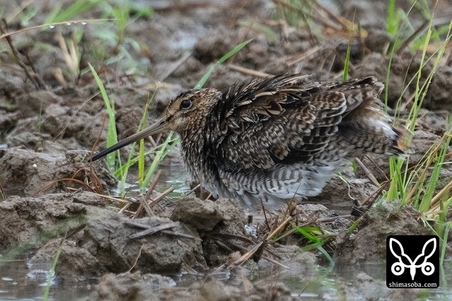 上のハリオシギと同じ田んぼにいたチュウジシギ。こちらは少し近かった。