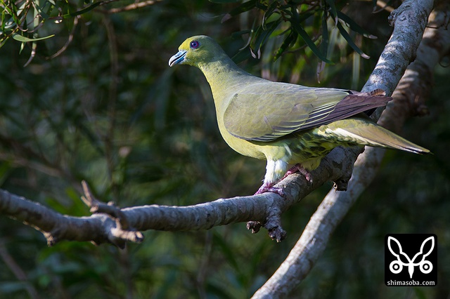 カタグロトビを見ていたらいつの間にかすぐ近くに止まっていたチュウダイズアカアオバト。こちらを気にしながらも逃げないので近くに巣があるのでしょう。