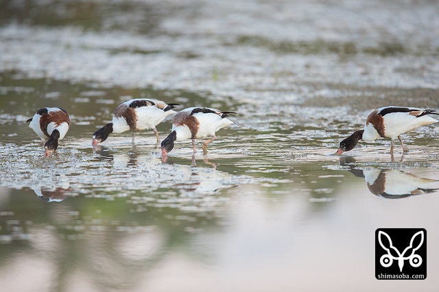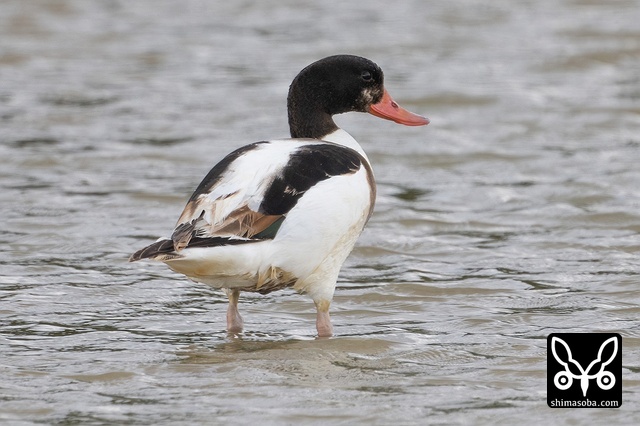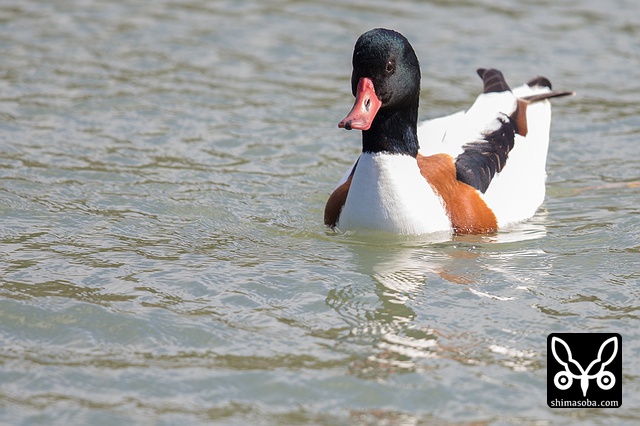 ツクシガモ。近くでじっくり観察できます。ミサゴがやってくると上空を気にしながらさらに近くに寄ってきます。