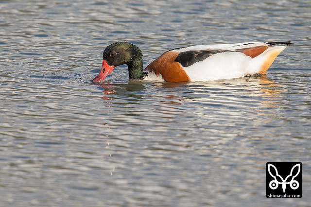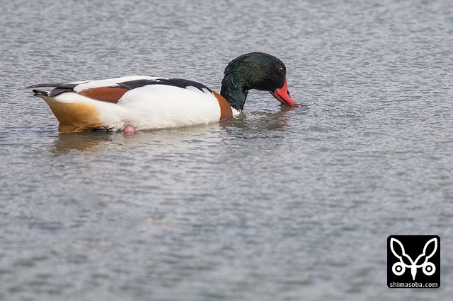 ツクシガモの成鳥オス。石垣島に成鳥が飛来するのは珍しいです。