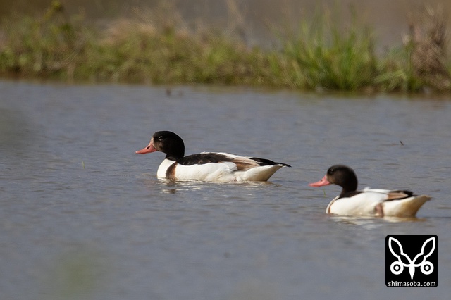 ツクシガモは2カ所に合わせて4羽が飛来。