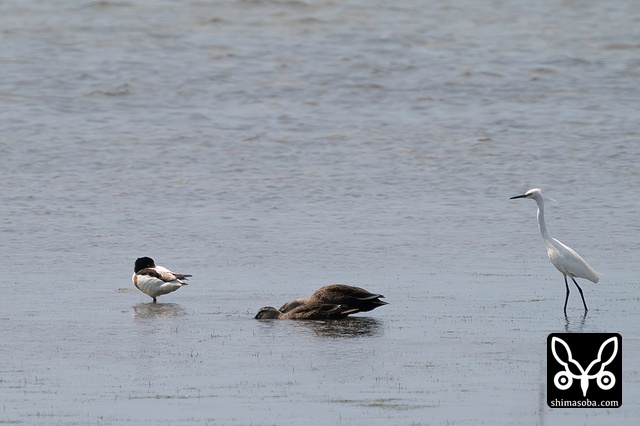 長期滞在のツクシガモ。ソリハシセイタカシギも同所で長期滞在。