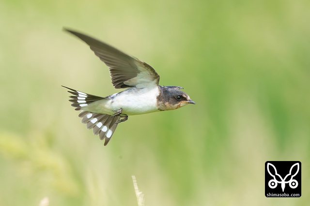 田んぼの上空を飛び交うツバメ。ジシギの尾羽を広げる係です。^^