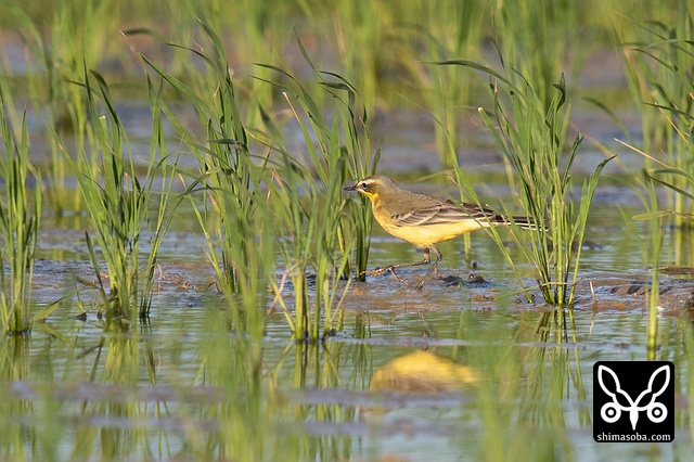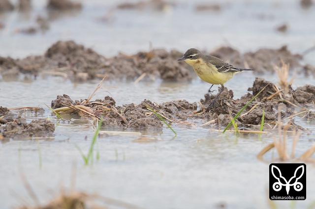 ツメナガセキレイは稲の苗の間で採餌していました。鳴き声はすれど、稲の陰に隠れてしまい、撮影はなかなか大変でした。