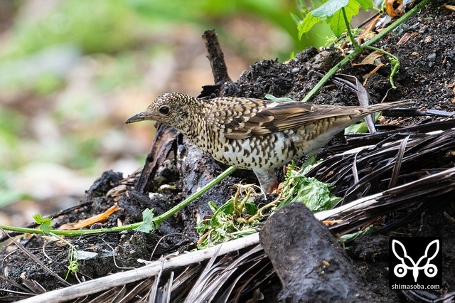 田んぼの農道にいたトラツグミ。
