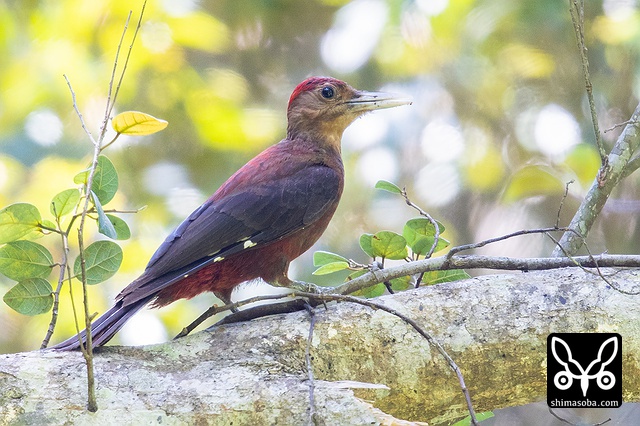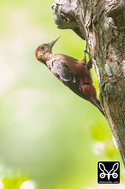メスのノグチゲラ。オスに比べると控えめな色合い。