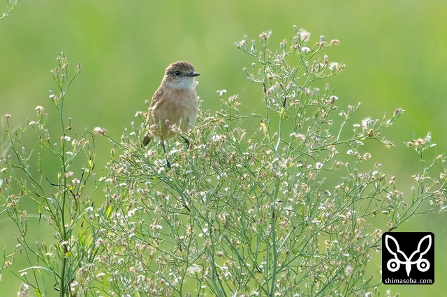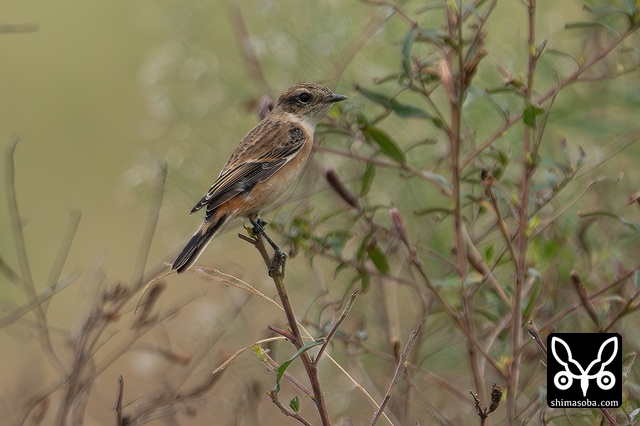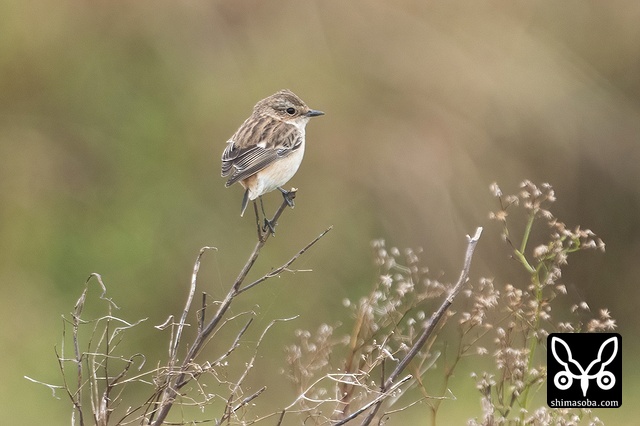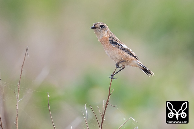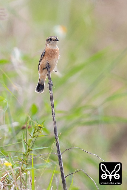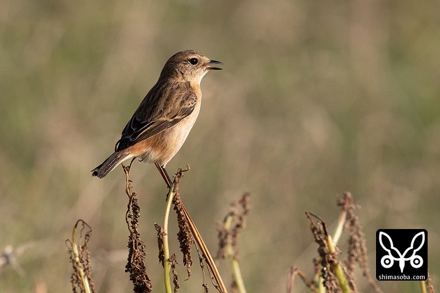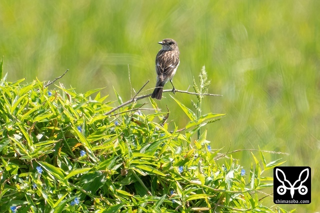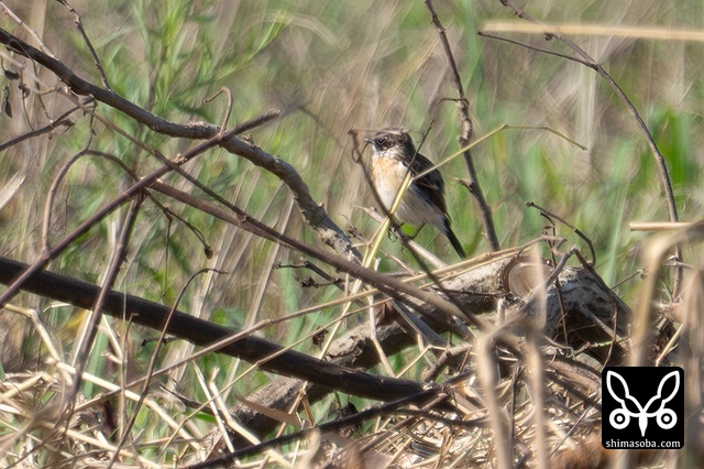 与那国島ではノビタキも越冬中。眉斑が白くて一瞬焦ったけど、若いノビタキです。
