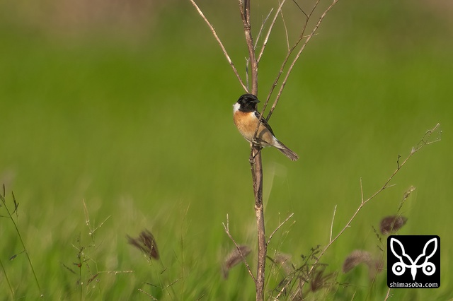 ノビタキのオスが飛来していました。島内には数羽が滞在中です。