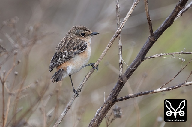 ノビタキのメス。こちらも島内で小数が越冬中しています。