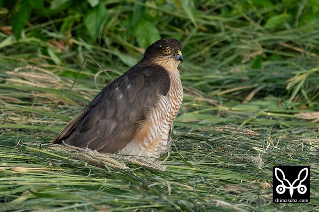 田んぼの上を飛び回り、稲の間にいるスズメやセキレイなどを追い出していた。ハイタカは今年は沖縄本島でも見る機会が多く、石垣島でも同じ状況だそうです。沖縄本島も石垣島でも見かけるのは全て幼鳥。美しい成鳥が見てみたい…。