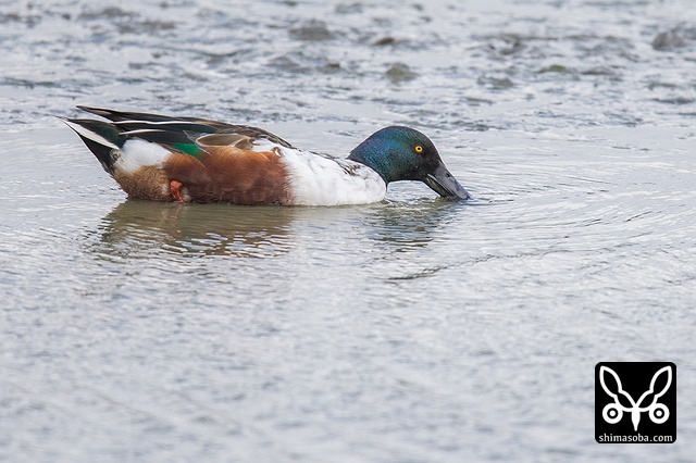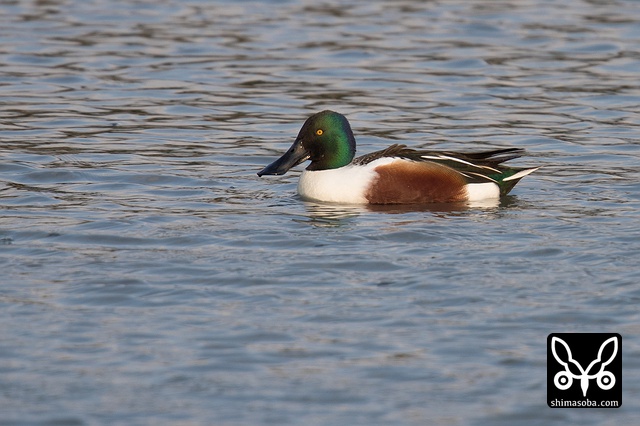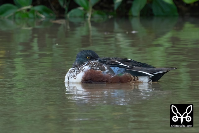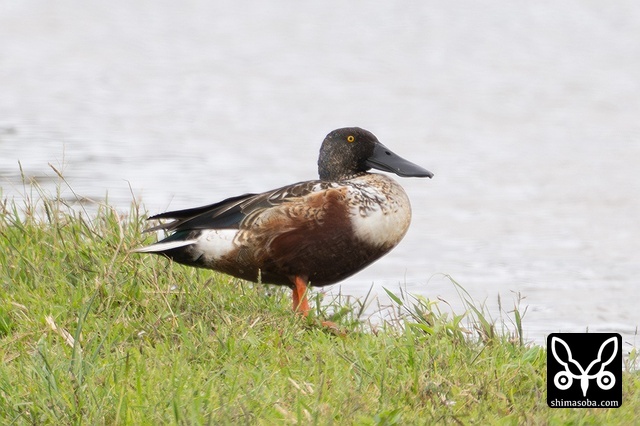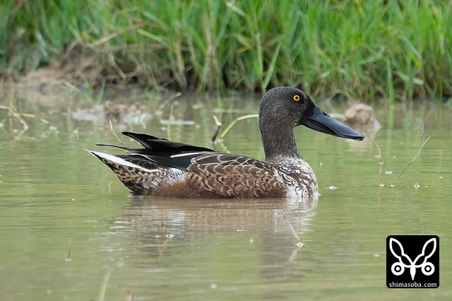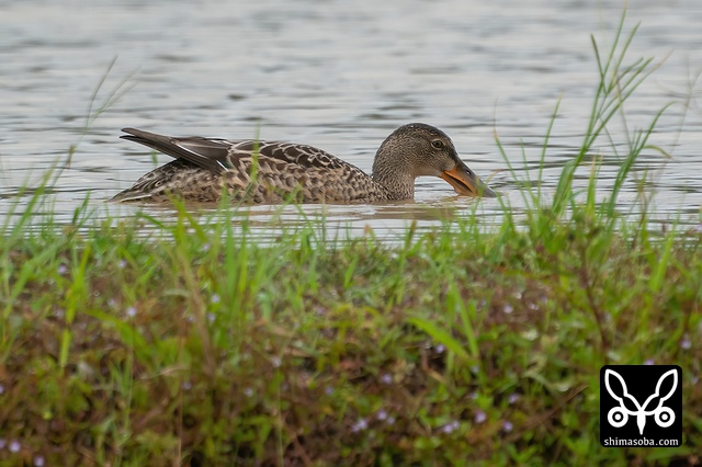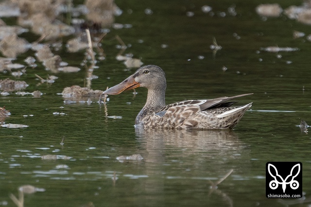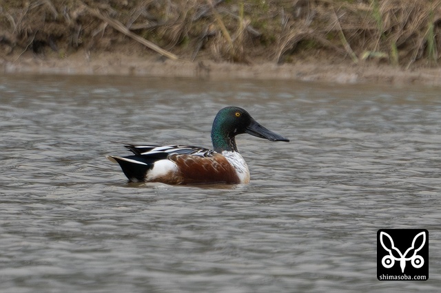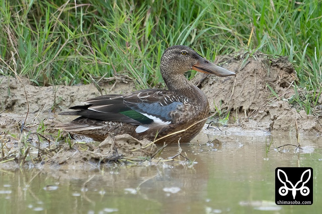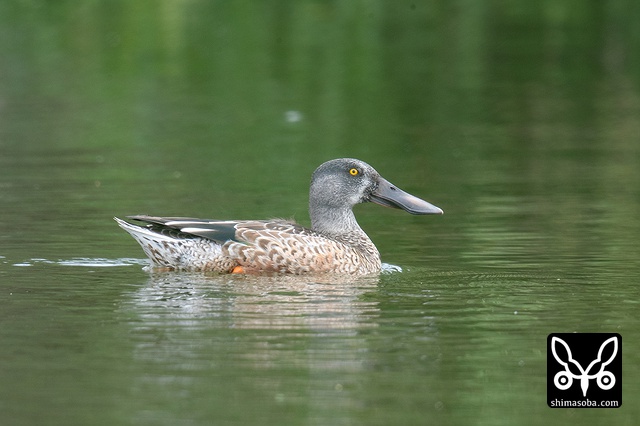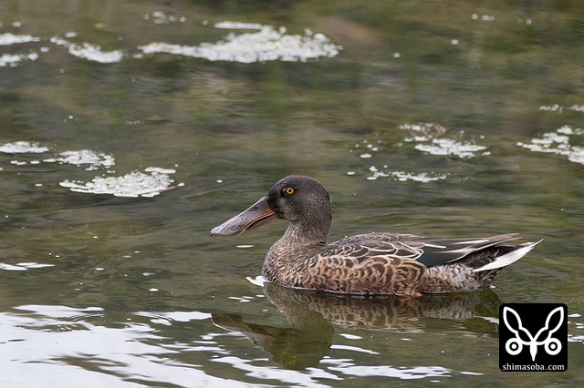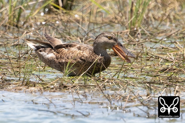 カルガモ以外、北上していなくなったのですが、田んぼにハシビロガモ(左)が1羽だけ残っていました。オスの幼鳥。石垣島で唯一、繁殖するカルガモは2週間ほど前から田んぼや水路で親子連れを観察できるようになりました。